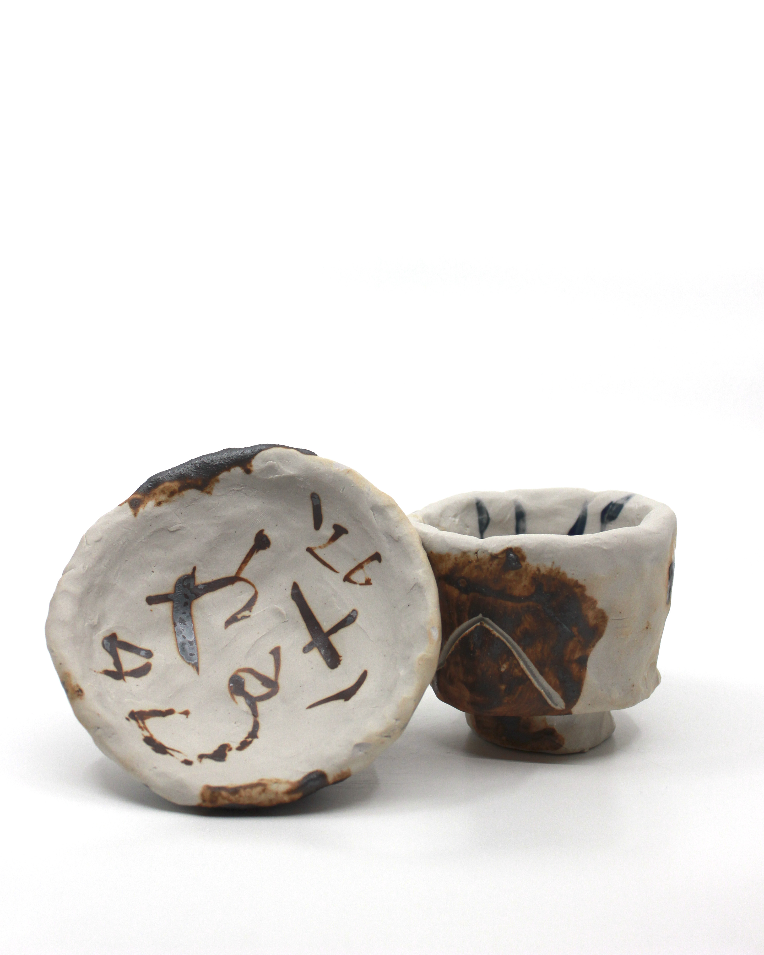 Lidded Piece with Two Shoegazers and Two Heno